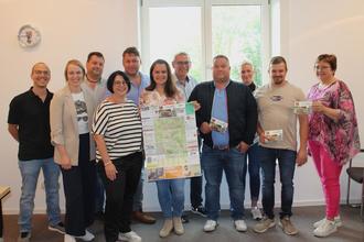 Bürgermeisterin Haimerl mit den Sponsoren des Ortsplans