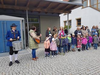 Kinder vom Haus für Kinder Wald hatten ein Begrüßungslied vorbereitet, das sie mit Unterstützung einiger Gemeinderäte und einem Trommler der Musikkapelle Eitzing sangen.