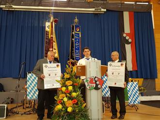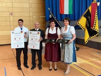 Auch der Kameradschaftsbund Eitzing und die RKK Roßbach/Wald hatten an diesem Abend Grund zu feiern. Seit zehn Jahren sind sie partnerschaftlich verbunden. Wolfgang Eichinger, Vorstand der RKK, bedankte sich für den würdigen Rahmen und sprach von einer langen, tiefen und ehrlichen Partnerschaft. Er selbst könne sich an seinen ersten Besuch in Eitzing, damals mit der Feuerwehr, noch gut erinnern. Wolfgang Eichinger und Georg Gaisbauer, Obmann des Kameradschaftsbund Eitzing, tauschten ebenfalls Urkunden aus. Margot Zahrer nutzte den Rahmen, um sich bei Georg Gaisbauer für sein langjähriges Engagement für den Kameradschaftsbund zu bedanken.