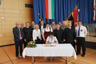 Europaabgeordneter Christian Doleschal betonte in seinem Grußwort, dass eine Patenschaft wie sie zwischen den beiden Gemeinden gepflegt wird, Europa lebendig mache. Viele haben dazu beigetragen, dass die Patenschaft bereits seit 60 Jahren besteht und immer noch von vielen Treffen geprägt ist. Stellvertretende Landrätin Gerlinde Graßl führte aus, dass die Verbindung zwischen den beiden Gemeinden zu den ältesten im Landkreis zähle. Sie überreichte an Margot Zahrer einen Bildband des Landkreises.