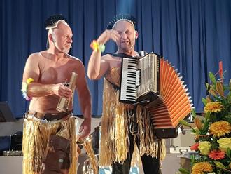 Bei Musik der Gruppe „Vorwaldblech“ und Bewirtung durch das Gasthaus Eder schloss sich das gemütliche Beisammensein mit viel Gelegenheit zum Austausch und für Gespräche an. Einen humorigen Beitrag trug das Duo Nitrophoska-Blau mit Reinhard Hof und Hans-Jürgen Reisser bei, sie wussten einige der Anwesenden zu „derblecken“.