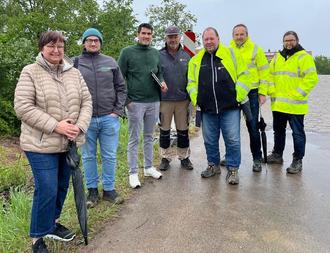Bild v. l. n. r.: Bürgermeisterin Barbara Haimerl, Daniel Burges und Robin Mecka von BBI, Thomas Wutz und Ralf Mölders von der Fa. Wutz, Wolfgang Held und Michael Adlhoch von der Verwaltung
