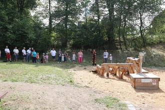 Der Bauhof der Gemeinde Wald habe hier viel Arbeit geleistet, sagte Haimerl weiter. Er hat das Gelände vorbereitet, dabei aber auch auf den Erhalt des Biotops geachtet. Die Anlage selbst habe die Gemeinde bei der SIK-Holzgestaltungs GmbH eingekauft, die Ausführung in Holz war der Gemeinde wichtig. Von den heimischen Firmen haben die Karl Schwinger GmbH, Landhandel Andreas Baumer, Tiefbau Weber, Elektrotechnik Helmberger und Metallbau Brunner zum Gelingen des Projekts beigetragen. Seitens der ILE wurde das Projekt mit nahezu 50 Prozent der Kosten gefördert, wofür man sehr dankbar sei, so Barbara Haimerl. Anschließend waren die Kinder eingeladen, die neue Spielmöglichkeit zu testen.