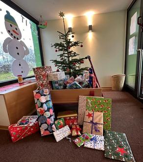 Nachdem unser Elternbeirat mehrere Wochen die Wünsche der Kinder gesammelt hatte, wurden diese auf Sterne angebracht und schließlich Anfang Dezember an den Weihnachtswunschbaum an der Gemeinde angebracht.