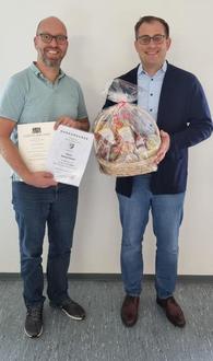 Überreichen der Urkunden an Daniel Görke (links) durch Bürgermeister Florian Atzmüller (rechts)