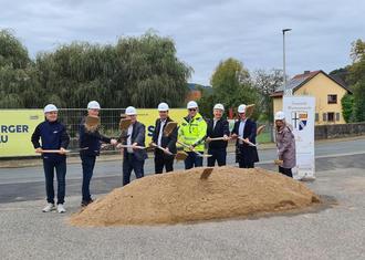 Mit einem symbolischen „Spatenstich“, auch wenn hier nur Schaufeln geschwungen wurden, begannen am 04. Oktober die Arbeiten in der Ortsdurchfahrt Windheim, die bis Ende nächsten Jahres andauern. Vertreter der Baufirma und der beteiligten Ingenieurbüros gaben so, zusammen mit Staatssekretär Sandro Kirchner, Landrat Thomas Bold und Bürgermeister Florian Atzmüller den Startschuss für das umfangreiche Projekt, bei dem Teile des Ortskanals, der Straße und zwei Brücken saniert werden und das Bachsystem renaturiert werden.