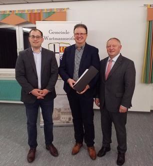 Im Rahmen der Gemeinderatssitzung wird Gemeinderatsmitglied Roland Brönner für seine Verdienste um die Gemeinde Wartmannsroth die kommunale Dankurkunde durch Herrn Landrat Thomas Bold verliehen.