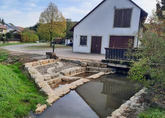 Der Dank des ehrenamtlichen Einsatzes der Dorfgemeinschaft Obereschenbach verwirklichte „Wasserspielplatz“ wurde mit dem Regionalbudget der Kommunalen Allianz Fränkisches Saaletal finanziell unterstützt. Foto: Holger Becker