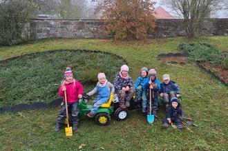Am 10.11. trafen sich wieder einige Eltern und Kinder mit Silvana und Johanna. Ziel war es die im letzten Jahr vom OGV geschaffene Kreuz- und Kreisfläche am Friedhof in Waizenbach weiter zu verschönern. Es wurden wieder viele Blumenzwiebel von fleißigen Händen gesteckt. Auch die Kinder waren mit Fleiß bei der Sache. Sogar mit Tretbulldogs und Anhängern wurde das Laub weg gefahren. Die Flächen wurden zum Schluss mit Wedel abgedeckt. So werden wir im nächsten Frühjahr wieder alle viel Freude an der blühenden Fläche haben.