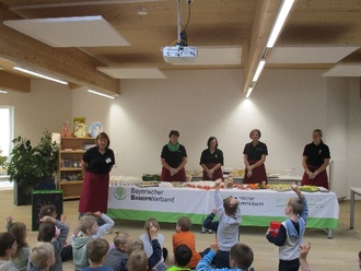 Alljährlich leisten Landfrauen vom Bayr. Bauernverband (BBV) ihren Beitrag, um Kindern in Schulen ein vollwertiges Pausenfrühstück mit Vollkornprodukten, Käse, Joghurt, Obst und Gemüse kostenlos einmal im Jahr anzubieten.