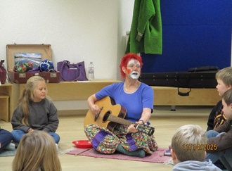 Kinder der GS Wartmannsroth, Umweltclownin Ines Hansen