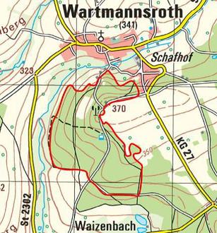 | a) | Mobilfunkmast südlich Wartmannsroth, im Umkreis von 500 m um das Objekt im bewaldeten Teil |