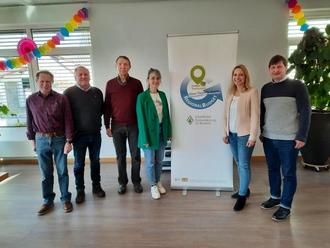 Das Entscheidungsgremium hat im EulenTreff in Fuchsstadt 13 Kleinprojekte für eine Regionalbudget-Förderung ausgewählt (von links): Reinhard Hallhuber, Manfred Manger, Alfred Jeurink, Bianca Mende, Melanie Unsleber und ILE-Umsetzungsbegleiter Holger Becker.