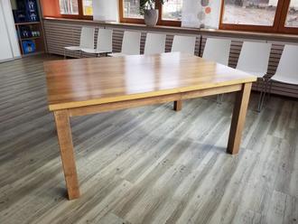 | 8 Stk. | Tische, Gestell aus Eiche massiv, Oberfläche gebeizt, Tischplatte 32 mm Spanplatte |