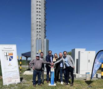 Personen v.l.n.r.: Albrecht Degen; Dr.-Ing. Martin Elsberger (Bayerisches Wirtschaftsministerium); Bürgermeister Florian Atzmüller; Sonja Baier (Bayerisches Mobilfunkzentrum); Landrat Thomas Bold; Peer Kollecker (Deutsche Funkturm)