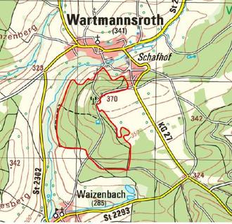| b) | Mobilfunkmast südlich Wartmannsroth, Umkreis von 500m im bewaldeten Gelände |