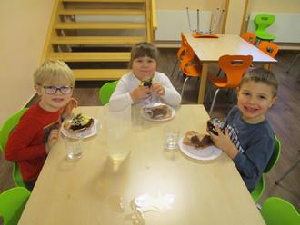 Am 07.01.2024 starteten wir gut erholt aus den Ferien mit einer anständigen Neujahrsparty. Zum Frühstück gab es leckere Muffins von der Bäckerei Habelitz. Nach dem Frühstück ging es dann so richtig los. Wir zündeten Konfettikanonen und Tischfeuerwerk, es waren viele kleine Überraschungen. Mit einem Glas Kindersekt haben wir auf das neue Jahr angestoßen und die Kinder erzählten von ihren Erlebnissen an Silvester. Natürlich wurde auch ordentlich getanzt.