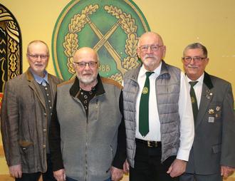 v.l.n.r. Gauschützenmeister Klaus Jentsch, Ehrenvorstände Jürgen Reuther und Günther Wagner, 1. Vorst. Günther Knauer