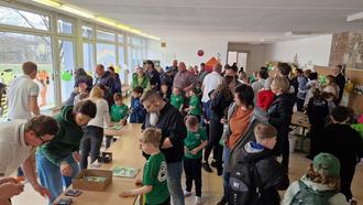 Kaum erworben, wurden am Vormittag bereits vor Ort in der Aula der Weidhäuser Schule schon fleißig Sticker geklebt, getauscht und interessiert im Album gelesen.