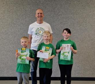 Vorne von links: Tom Seiler, Finn Seiler, Lina Braun mit Vors. A. Faber)