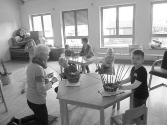 In der Osterzeit hatten wir besonderen Besuch im Kindergarten. Renate und Christine kamen mit Baumscheiben und Weidenästen bestückt zu uns. Mit viel Geduld und liebevollem Engagement haben die zwei mit einigen Kindern Körbchen geflochten. Die Kinder bewiesen handwerkliches Geschick und hatten sichtlich Spaß dabei. Am Ende zeigten sie mit Stolz ihre fertigen Werke.
