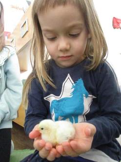 Vor ca. drei Wochen haben wir in unserer Kita Zuwachs bekommen. Viele kleine Eier kamen in einer Brutmaschine zu uns, die Aufregung und Vorfreude bei den Kindern war natürlich riesig. Die Kinder haben sich jeden Tag mit viel Liebe und Sorgfalt um die Eier gekümmert. Täglich durften sie das Wasser auffüllen und kontrollieren ob denn alles in Ordnung ist. Nach ca. einer Woche haben wir dann mit den Kindern gemeinsam die Eier durchleuchtet um zu sehen, ob den darin ein kleines Küken heran wächst. In der Woche vom 17.04. - 21.04. war es dann endlich soweit. Die ersten Küken haben sich durch die Schale gekämpft und sind geschlüpft. Nach und nach wurden es immer mehr und das fröhliche Gezwitscher konnte man durch die ganze Kita hören. Das Highlight war dann natürlich, als die Kinder die Küken auf die Hand nehmen durften.