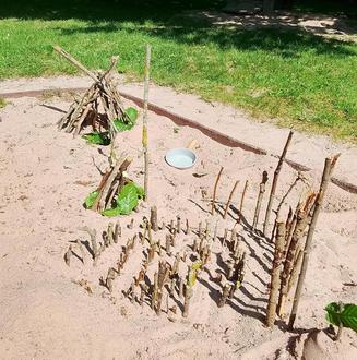 Diese Woche haben wir mit den Kindern das schöne Wetter genossen. Da hieß es nach dem Frühstück und Morgenkreis einfach raus, raus, raus! Und wieder waren sie fleißige Entdecker bei uns im Garten. Von einem Stein, der aussieht wie ein Dreieck bis hin zu keinen Tierchen wird alles genaustens unter die Lupe genommen. Ganz viele Raupen konnten wir entdecken und haben uns vorgestellt wie diese wohl mal als Schmetterling aussehen würden. Aber da gab es auch noch andere Tierchen, die den Raupen ähneln. Tausendfüßler. Haben die eigentlich wirklich 1000 Füße? Die Kinder haben versucht das rauszufinden. Tausend Füße könnte man auch brauchen um durch das selbstgebaute Labyrinth zu kommen. Aus kleinen Stöckchen bauten die Kinder verschiedenste Konstruktionen in den Sand. Zum Glück konnten alle das Labyrinth-Rätsel lösen.