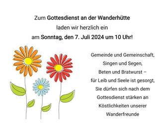 | 10:00 Uhr | Gottesdienst an der Wanderhütte |
