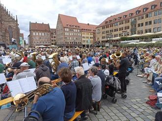 Der Landesposaunentag ruft und unsere Bläser und Bläserinnen aus dem Posaunenchor kommen! Nach Nürnberg ging es in diesem Jahr und wir durften miterleben, wie Hunderte von Posaunen und Trompeten, Tuben und Hörnern zu Gottes Lob auf dem großen Markt vor der Frauenkirche in Nürnberg erklingen!