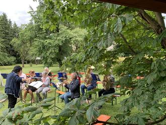 Unter Leitung von Gabi Friedrich spielten die Bläser aus Neuensorg und Weidhausen und die Gottesdienstbesucher konnten eine Liedpredigt von Pfarrer Baumann zum Paul Gerhardt Lied: „Du meine Seele singe“ hören und genießen.
