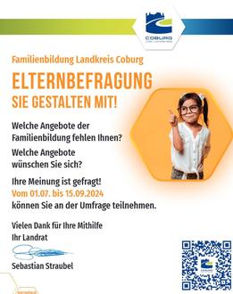 Im Rahmen des bayernweiten Förderprogramms zur strukturellen Weiterentwicklung kommunaler Familienbildung und der Einrichtung von Familienstützpunkten startet in diesem Jahr eine umfangreiche Elternbefragung im Landkreis Coburg.