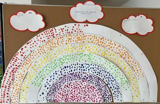 Für jede teilgenommene Station wurde ein Fingerabdruck in unserem Regenbogen hinterlassen. Denn das Ziel war, insgesamt 1500 Fingerabdrücke zu schaffen, damit am Dienstag ein Spieletag mit Eiswagen-Besuch stattfinden konnte. Alle haben fleißig mitgeholfen. Und am Schluss konnte das Schulfest mit 1986 Fingerabdrücken und einem sensationellen „Teamwork-Flashmob“ fröhlich ausklingen.
