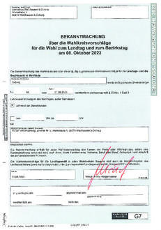 über die Wahlkreisvorschläge für die Wahl zum Landtag und zum Bezirkstag am 08. Oktober 2023