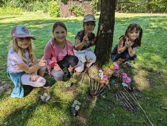 Am nächsten Tag sind in unserem Schulgarten Feen eingezogen. Aus verschiedenen Naturmaterialien sind fantasievolle Feenhäuser entstanden.