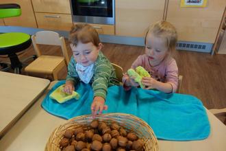 Die Kinder der Sonnenwichtel wollen den Herbst mit all seinen Farben und Facetten kennenlernen. Natürlich gehören dazu bunte Blätter und Kastanien, aber auch Nüsse gibt es viele zu entdecken. Zusammen haben wir viele Walnüsse gesucht und gefunden. Nach dem Sammeln waren wir aber nicht fertig, denn geputzt werden wollen die Nüsse natürlich auch noch. Aber auch das geht Zusammen super schnell und macht viel Spaß. Als Belohnung für die ganze Arbeit lassen die Kinder sich die Walnüsse als Snack für zwischendurch schmecken.
