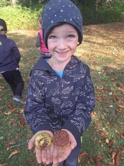 Die Ersten Blätter fallen von den Bäumen und so langsam wird es kälter. Natürlich hält auch der Herbst im Kindergarten Einzug. Die Kinder haben schon einiges zum Thema Herbst gehört, gebastelt und gemalt. Wir lernen auch gerade ein Fingerspiel von 5 kleinen Igeln. Bei einem Herbstspaziergang sind die Schulis auf Kastaniensuche gegangen. Wir haben auch tatsächlich schon welche gefunden. Außerdem haben wir einen ganzen Eimer voll mit Kastanien geschenkt bekommen. Daraus werden in der nächsten Zeit Ketten, Kastanienmännchen uvm. entstehen.