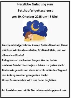 | 18:00 Uhr | Betthupferl-Gottesdienst in Weidhausen |