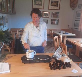Spannende Einblicke und dufte Erlebnisse hatten unsere Gäste beim Vortrag von Tanja Schelhorn. Eindrucksvoll brachte sie ihr Wissen vor und mit Hilfe des Assistenten Willi konnte am Ende der Veranstaltung jeder Gast, bzw. jedes Ehepaar einen kleinen Tiegel Fichtenbalsam mit nach Hause nehmen.