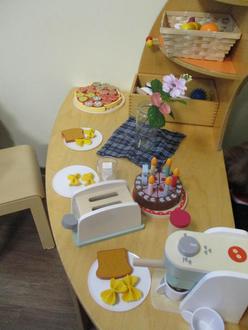 Es war viel los in der letzten Woche bei den Kleinen Riesen in der Oase. Zuerst haben wir den Gruppenraum umgestellt und dann gab es auch noch eine neue Puppenecke für die Kinder. Mit der neuen Raumaufteilung gab es natürlich viel zu entdecken für die Kinder. Es sind auch ein paar neue Ecken dazugekommen, in denen die Kinder ihren besonderen Interessen nachgehen können. Neu sind eine gemütliche Leseecke, eine Mosaik- & Steinelege-ecke und eine Toniecke. Während die Materialien für die neuen Ecken bereits bei uns vorhanden waren, wurde für die Puppenecke eine komplett neue Spielküche vom Elternbeirat spendiert. Deshalb wollen wir uns an dieser Stelle nochmal ganz herzlichst bei unserem Elternbeirat für diese tolle Spende bedanken. Die neue Spielküche ist das Highlight für die Kinder und sie wurde gleich nach dem Aufbau sofort in Beschlag genommen. Gemeinsam haben wir die neuen Utensilien für die Spielküche aufgeräumt, damit sich die Kinder auskennen und auch wissen wo was zu finden ist. Gleichzeitig haben wir diese Gelegenheit auch genutzt um unser gesamtes Puppen-ecken-Inventar auszusortieren. Dazu haben wir uns im Kreis versammelt und entschieden welche der Sachen wir behalten wollen und welche Sachen bereits ausgedient haben.