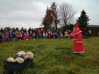„Von drauß vom Walde, da komm ich her“ so sagte der Nikolaus, als er aus dem Wald auftauchte. Wie groß war die Freude der Kinder, als sie den Nikolaus sahen, denn sie hatten sich mit ihren Familien auf einer Wiese in Waldrandnähe versammelt und dort auf ihn gewartet. Mit Gedichten und Liedern erfreuten die Jungen und Mädchen den guten Mann. Der staunte nicht schlecht und bedankte sich gleich bei den kleinen Künstlern mit Leckereien aus seinem Sack. Mit dem Lied „Lasst uns froh und munter sein“ verabschiedeten die Kinder den Nikolaus und freuen sich schon auf ein Wiedersehen im nächsten Jahr.