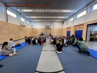 Die Vorschulkinder der Kitas „Kleinen Welt“ und der „Oase“ sowie alle Schulkinder freute sich sehr, dass wir dieses Musikstück zum Mitmachen in unserer Turnhalle erleben durften.