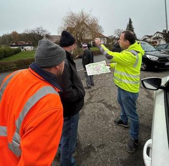 Bei einem Termin vor Ort nahmen Bürgermeister, Bauverwaltung, Bauhof, Jagdvorstände und das Amt für ländliche Entwicklung teil. Nach kurzer theoretischer Einführung in die Problematik durch den Bürgermeister ging es in die Fläche, um kritische Stellen zu begutachten.