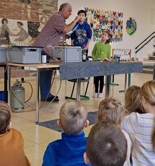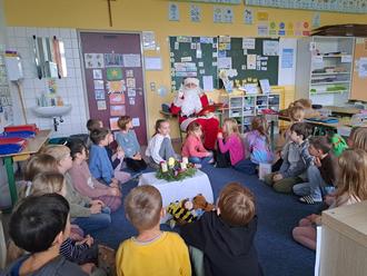 In der Adventszeit war einiges los in der Grundschule Weidhausen. Jeden Montagmorgen trafen sich alle Kinder und Lehrkräfte zu einer Adventsandacht in der Aula. Zur besinnlichen Einstimmung in die neue Adventswoche präsentierten die verschiedenen Klassen etwas Weihnachtliches: Von den Fröschen und Füchsen wurde die Geschichte zur Tradition des Adventskranzes an einem echten Wagenrad veranschaulicht und das Weihnachtslied „Es sahen drei Eulen den Weihnachtsstern“ vorgetragen. Die Tiger und Bären sorgten mit ihrem „bewegten Weihnachtsgedicht“ dafür, dass neben dem Naschen vieler süßer Leckereien auch die Bewegung in der Adventszeit nicht zu kurz kam. Neben den Adventsandachten gab es noch mehr weihnachtliche Highlights: Am Freitag, den 05.12.2025, wurde die vorweihnachtliche Stimmung in der Grundschule Weidhausen beflügelt durch einen ganz besonderen Gast. Die Kinder bekamen Besuch vom Glasbläser Herr Sinne, der ihnen seinen Beruf auf unterhaltsame Art und Weise näherbrachte und sie für die Herstellung seiner schönen Glaskunst, darunter auch Weihnachtsschmuck, begeisterte. Auch wenn der Nikolaustag in diesem Jahr auf einen Samstag fiel, blieb der traditionelle Besuch vom Nikolaus nicht aus. Dieser kam am Montag, den 08.12.2025, in der Grundschule vorbei, um die Kinder mit leckeren Schokonikoläusen zu beschenken. Als krönender Abschluss vor den Weihnachtsferien fand am Freitag, den 19.12.2025,nach klasseninternen Weihnachtsfeiern das „Weidhäuser Weihnachtskino“ statt: Jedes Klassenzimmer verwandelte sich in einen Kinosaal, in dem ein Weihnachtsfilm zu sehen war. Das gesamte Team der GS Weidhausen wünscht allen von Herzen frohe und besinnliche Weihnachten und schon jetzt einen guten Start in das neue Jahr!