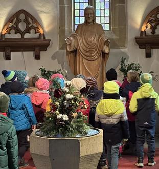 Am vergangenen Freitag sind wir mit den Kindergartenkindern zur örtlichen Kirche gelaufen. Dort haben wir eine Führung von Frau Reith bekommen und konnten alle offenen Fragen klären. Die Kinder waren begeistert, alle Sachen in der Kirche zu erkunden und auch bereits bekannte Dinge und Symbole zu entdecken. Manche Kinder konnten mit ihrem Expertenwissen glänzen. Besonders interessant waren für die Kinder die Orgel, die alten Kirchglocken vor der Kirche und die Liedtafel mit ihren Ziffern. Alle Kinder durften eine Ziffer von der großen Liedtafel abnehmen und wieder richtig einsortieren. Und was wäre Kirche ohne Musik? Frau Reith hat uns das Lied „Gottes Liebe ist so wunderbar“ näher gebracht. Mit Gitarrenklang und Bewegungen hat es für alle Kinder richtig viel Spass gemacht. Besonders spannend war die „Geheimtür“. Dahinter befand sich die Sakristei, mit allem, was man in einem Gottesdienst brauchen kann. Am Taufstein haben einige Kinder von den Taufen ihrer Geschwister erzählt. Und die Kinder haben erfahren, dass man immer kommen kann und eine Kerze für sich oder jemanden anderen anzünden kann, dem es gerade nicht so gut geht. Am Ende des Tages wussten die Kinder darüber bescheid was es alles in der Kirche gibt, warum es bestimmte Sachen in der Kirche gibt – wie z.B. die große Kerze, die ein ganzes Jahr immer wenn Gottesdienst ist, angezündet wird oder die Liedtafel – und auch wann man in die Kirche kommen kann.