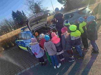 Am Montag, den 17.02.25 besuchte uns Herr Höhne von der Polizei Neustadt. Wir sind gemeinsam mit ihm durch Weidhausen gegangen und haben mögliche Schulwege geübt. Bald ist es nämlich soweit, die Vorschulkinder werden zu Schulkindern und laufen dann am Morgen alleine zur Grundschule. Dafür ist es wichtig, dass die Jungen und Mädchen die Verkehrsregeln kennen und wissen, wie sie sich in verschiedenen Situationen verhalten müssen, um sicher am Ziel anzukommen. Herr Höhne hat den Kindern z. B. erklärt wie der Verkehrshelferüberweg funktioniert, oder was ich bei der Fußgängerampel beachten muss uvm. Die Kinder haben die Hausaufgabe bekommen, jede Woche mindestens einmal mit ihren Eltern den Schulweg zu üben. Denn umso öfter man dies übt, umso sicherer wird man. Zum Abschluss durften die Kinder noch das Polizeiauto besser kennenlernen und das Highlight war, dass jeder sich auch einmal hinein setzen durfte.