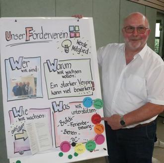 Ehemaliger Bürgermeister Egon Herrmann als Vorsitzender des Fördervereins warb dafür, Mitglied zu werden. Die Jahresgebühr liegt bei 15 Euro. Seit zehn Jahren unterstützt der Verein die Schule. Durch die Beträge und die Unterstützung vieler Spender und Förderer kann die Arbeit der Schule unterstützt werden. Beispielsweise werden die Bufdis unterstützt. Die Imkerei wird gefördert und die Ferienbetreuung. „Wünsche der Schule können erfüllt werden“, betont Egon Herrmann. Er würde sich wünschen, dass noch viel mehr die Schule regelmäßig unterstützen.