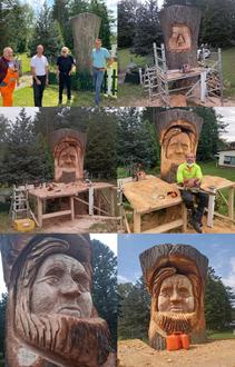 Nach einer kurzen Prüfung des Stamms, machte sich Michael Schütt an die Arbeit und es entstand einem mehr als sehenswerten Ergebnis! Der Lindenstamm mit dem Gesicht von Johann-Georg Herzog begrüßt nun Einheimische wie Ortsfremde am Ortseingang und ist ein weiteres, gelungenes Puzzleteilchen unserer Dorferneuerung in Hummendorf.