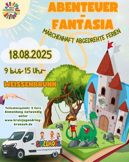 Seid dabei, wenn das Spielmobil in diesem Sommer zu einem fantastischen Tag im Reich von Rittern, Prinzessinnen, Zauberwesen und wilden Drachen einlädt! Unter dem Motto „Abenteuer Fantasia – märchenhaft abgedrehte Ferien“ verwandelt sich Weißenbrunn am 18. August 2025 von 9 bis 15 Uhr in eine magische Erlebniswelt voller spannender Herausforderungen und märchenhafter Überraschungen.