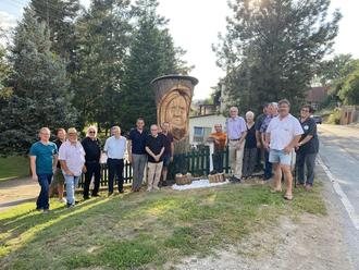 Bei hochsommerlichen Temperaturen fand im kleinen Kreise die offizielle Vorstellung der „Baum-ART“-Skulptur in Hummendorf statt. Das Objekt wurde im Rahmen der HolzART XXVI im Juli 2024 geschaffen. Bürgermeister Neubauer konnte neben einigen Gemeinderatsmitgliedern, den Eigentümer der Linde, Hans Karl Ehm, Ingo Cesaro, den Vorsitzenden des Vereins Regionale Kunstförderung Kronach e. V., den Pressecker Holzschnitzkünstler Michael Schütt, den Kreisheimatpfleger Dieter Lau, den Vorsitzenden des Arbeitskreis Heimatpflege für Weißenbrunn und seine Gemeindeteile, Herrn Ulrich Biedermann, Herrn Gerd Stahlberger, den 2. Vorsitzenden der Dorfgemeinschaft Hummendorf, Herrn Gerolf Ruff, den kaufmännischen Leiter von SRP sowie Frau Marianne Weiß, die Eigentümerin des Geburtshauses von Johann Georg Herzog begrüßen.