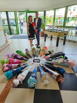 Bürgermeister Neubauer spricht allen anwesenden ein kurzes Grußwort aus und erfreut sich an den steigenden Schülerzahlen im Kreis Kronach, 540 Schülerinnen und Schüler werden dieses Jahr eingeschult. Wie jedes Jahr hat Bürgermeister Neubauer eine Schultüte voller Überraschungsgeschenke für die Erstklässler dabei.